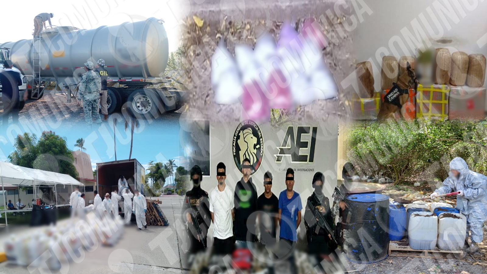En El Marqués, en los poblados de Los Trigos y El Marqués, elementos del Ejército Mexicano localizaron e inhabilitaron un laboratorio clandestino para la elaboración de metanfetamina, aseguraron 1,790 litros y 528 kilos de sustancias químicas, tres reactores de síntesis orgánica, dos condensadores y tres destiladores.