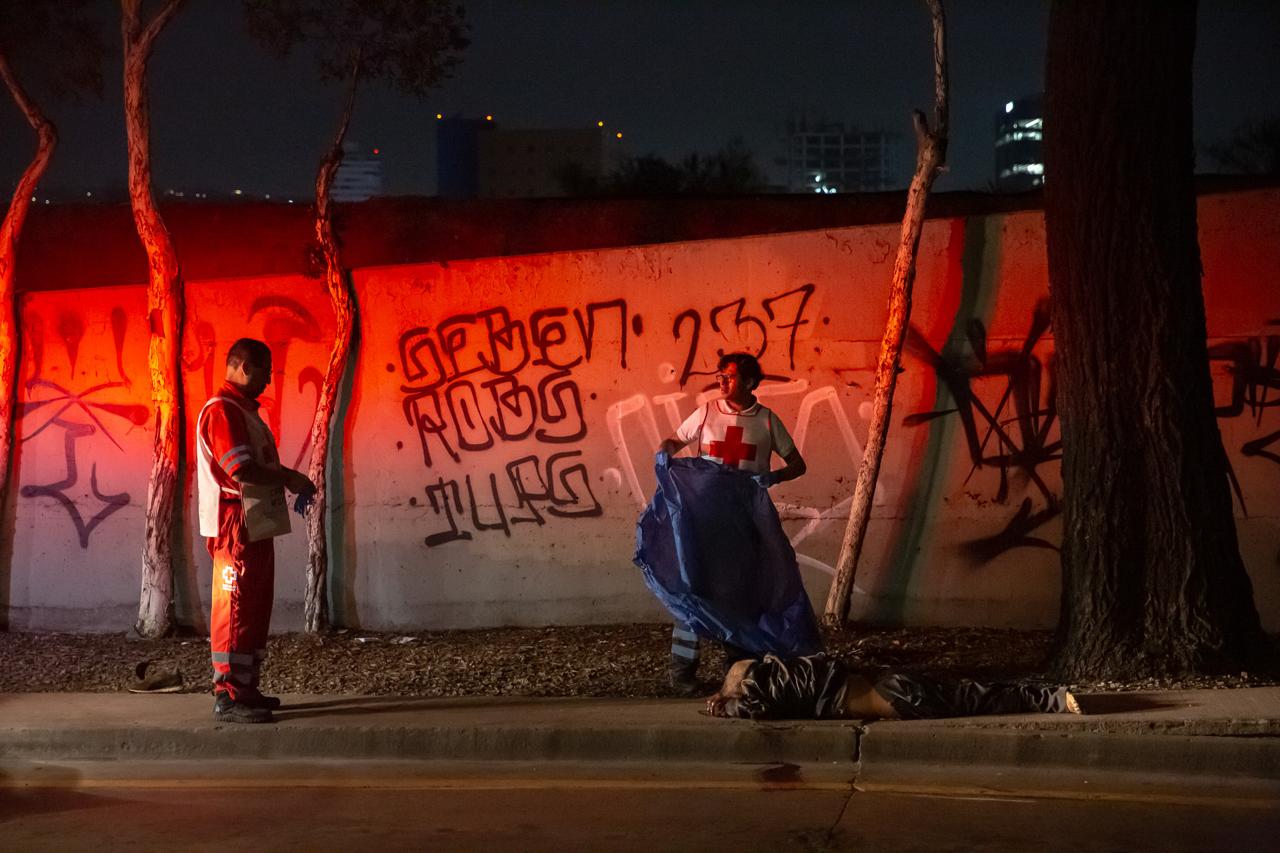 Al lugar acudieron paramédicos y elementos de rescate, quienes confirmaron el fallecimiento del hombre y de su mascota. El cuerpo fue cubierto con una sábana azul mientras se esperaba el arribo de las autoridades ministeriales.