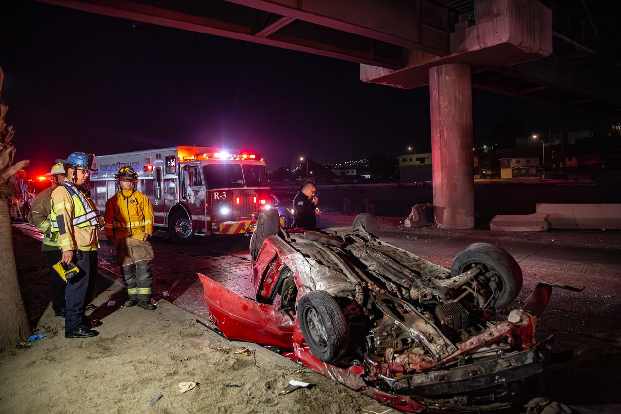 Paramédicos voluntarios de Rescate Tijuana y de la Cruz Roja solicitaron el apoyo del Cuerpo de Bomberos para liberar a un hombre que quedó prensado dentro de un vehículo sedán color rojo, con placas de California 6RSV836.
