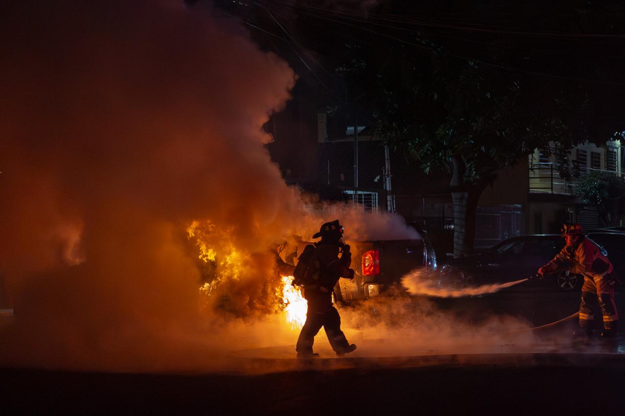 Una pareja incendió un automóvil la madrugada de este jueves afuera de un domicilio ubicado en la calle Baja California y avenida Cristóbal Colón, en la colonia Zona Norte.